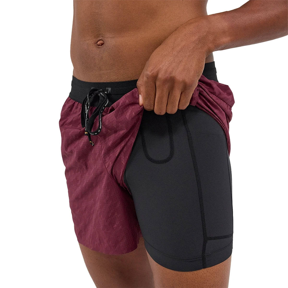A custom-developed exposed elastic waistband with a branded drawstring delivers a secure, adaptive fit, and the built-in anti-chafing brief includes a total of six hidden pockets, four for fuel and two for your phone, ensuring you can carry essentials discreetly.