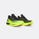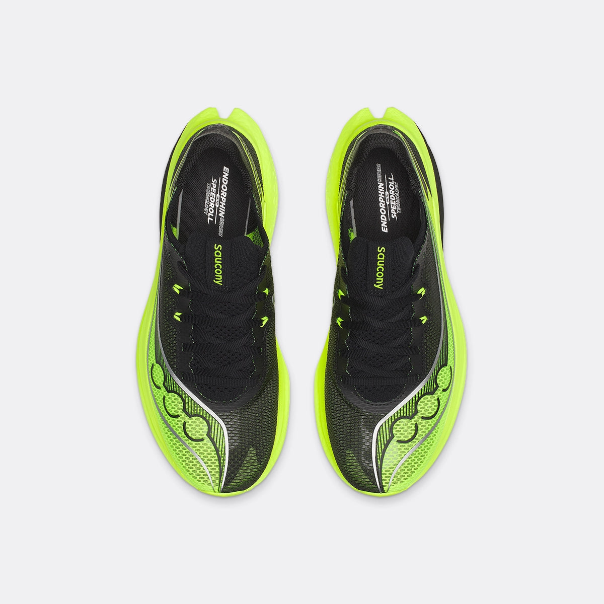 For runners chasing personal bests from 5 km to the marathon, the Saucony Endorphin Pro 5 refines a proven formula with a sharper, more aggressive race-day feel while retaining its smooth, predictable ride. A dual-layer superfoam midsole pairs supercritical PWRRUN HG on top, now wrapped higher up the sides for improved inherent stability, with a PWRRUN PB base layer that features a strategic cutout to reduce weight without sacrificing cushioning. A full-length carbon fibre plate, updated with a slotted forefoot and a more pronounced rocker profile, delivers faster transitions and powerful propulsion. Grip and durability are enhanced with a new PWRTRAC outsole, while the lightweight recycled engineered mesh upper provides breathable, streamlined lockdown ideal for racing. The Saucony Endorphin Pro 5 is Built for speed without compromising confidence.