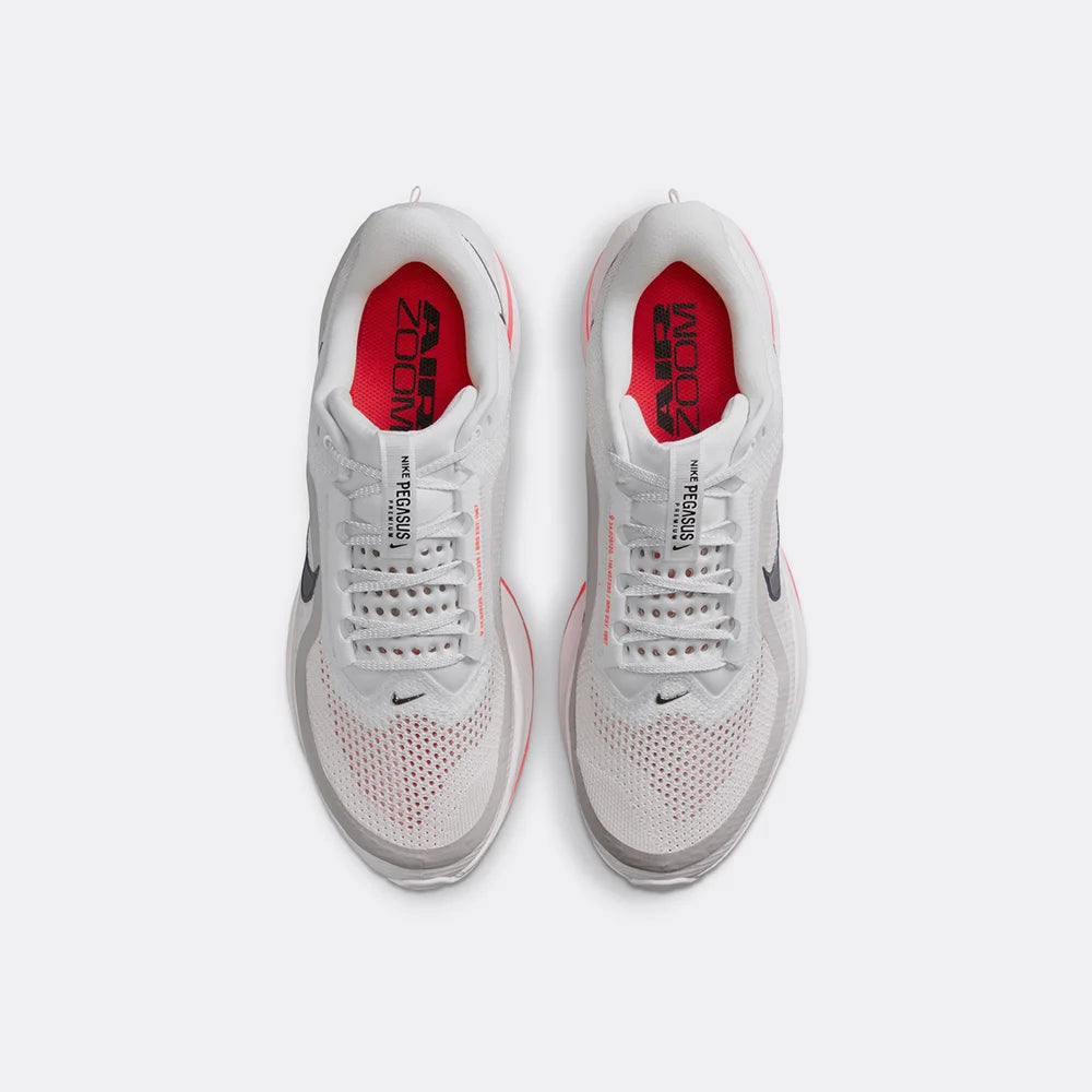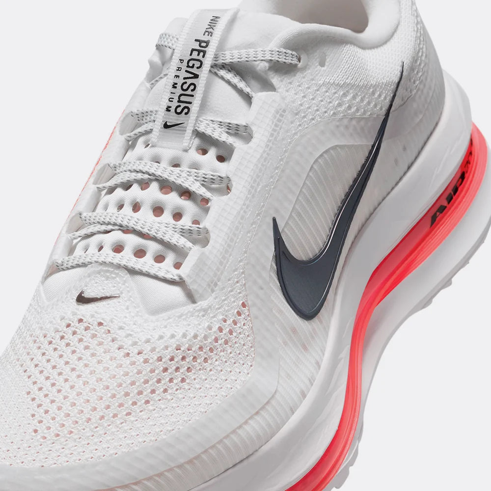 The Pegasus Premium supercharges responsive cushioning with a triple stack of our most powerful running technologies: ZoomX foam, a sculpted Air Zoom unit and ReactX foam. It's the most responsive Pegasus ever, providing high energy return unlike any other. With a lighter-than-air upper, it decreases weight and increases breathability so you can fly faster.