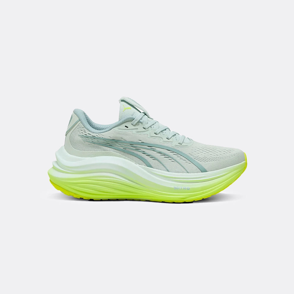 The Puma MagMax delivers a plush, responsive ride thanks to a full bed of NITROFOAM™, engineered for supreme softness and energy return with every stride. Built for daily mileage and long road sessions, this max-stack trainer keeps things smooth underfoot while effortlessly rolling you forward.