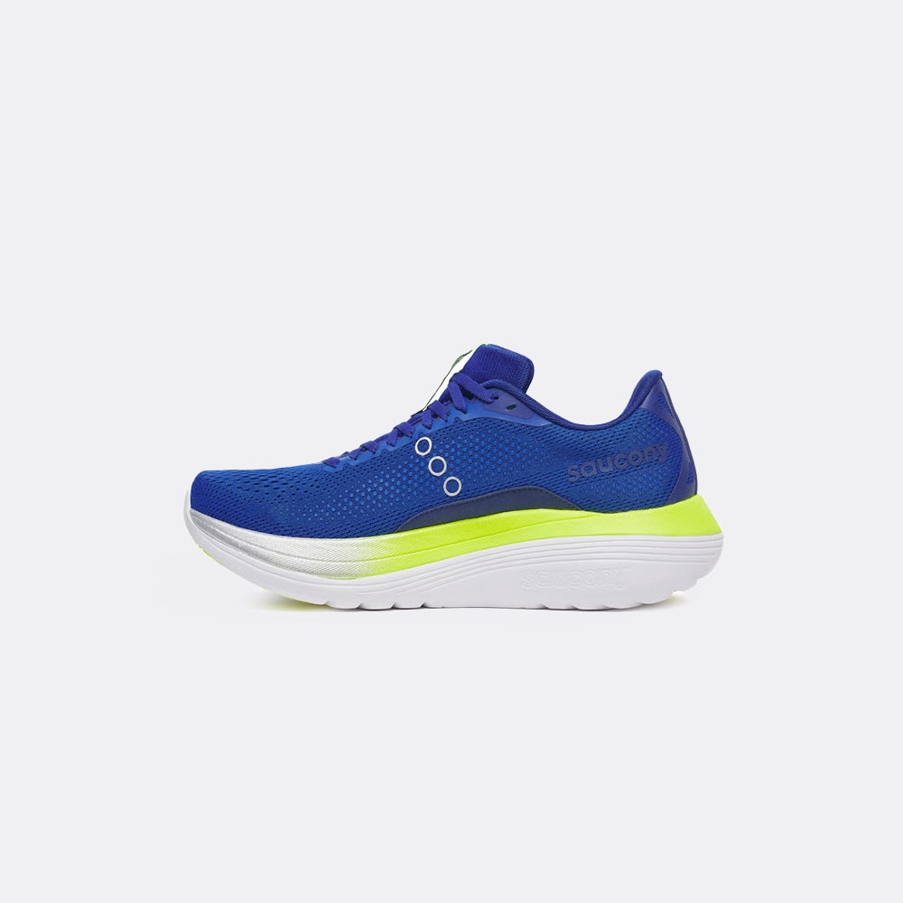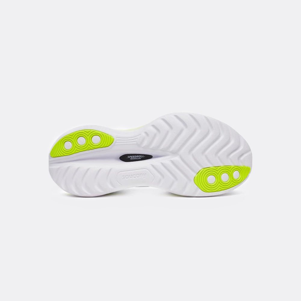 Stacked high with 39.5 mm in the heel and 31.5 mm in the forefoot (8 mm drop), the Saucony Endorphin Trainer delivers a plush, stable ride ideal for long runs, recovery efforts, and tempo workouts alike. At its core is a dual-foam midsole featuring soft, springy IncrediRUN superfoam layered over supportive PWRRUN foam for a balance of bounce and structure that holds up over distance.